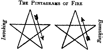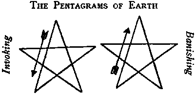 The Pentagrams are traced in the air with the sword or other weapon, the name spoken aloud, and the signs used, as illustrated.