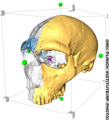 This undated computer image shows a 3-D reconstruction of a Neanderthal skull. |