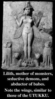 In fact, while Lilith was a "woman" of some pre-Adamic sort, she is also considered to also be an evil spirit, and in Hebrew/Babylonian traditions, is the mother of all succubae and incubae herself, or their spiritual progenitor. From ancient times to the present, esoteric tradition has held that she visits 'those men who sleep alone,' seduces them through their dreams for purposes of extracting semen, or else assaults them in the form of a 'night terror,' 'old hag,' or 'sleep paralysis' episodes for the same purpose. From the semen collected, she is said to engender a partially-physical, partially ethereal brood or race, called the 'Lilim' (Babylonian-Assyrian lilu/incubus and lilitu/succubus). These beings can be visible or invisible at will, physical or nebulous, and act out the same evils as their ancestress or mother. They are also the same entities that are sometimes glimpsed by the victims, often with a reptilian appearance, and sometimes with other forms, which can range from satyr or 'imp-like' (the modern 'gray alien abductor' similarity is apparent here), to attractive, hideous, hag-like, or horrid. One of the only defenses against the whole family, in ancient times at any rate (more effective spiritual protections have come about in the ensuing centuries), were amulets bearing the names of the three angels who, according to Hebraic tradition, punished Lilith for breeding with the demons of the underworld. Their names were Senoi, Sansenoi, and Samangeloph.