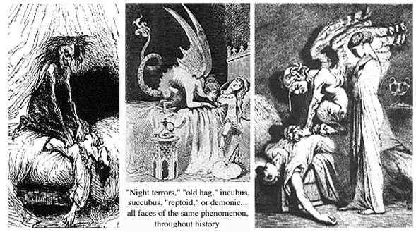 Sean is not alone in his experiences. Other men and women have revealed similar accounts, ranging from being held immobile, with or without of glimpse of the entity responsible, to moving from an erotic dream situation of extreme realness and into a similar hypnogogic state….sometimes glimpsing that which is inducing the sensations of the dream which had been underway. These intruders range from amorphous forms or beings of light or shadow, to 'alien hybrids,' 'reptoids,' 'old hags,' 'devils,' or alluring men and women. All are apparently different MASKS for the same phenomenon.