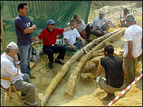 They are the longest tusks ever found on a prehistoric elephant-like animal. "It is spectacular," Mr Mol said.