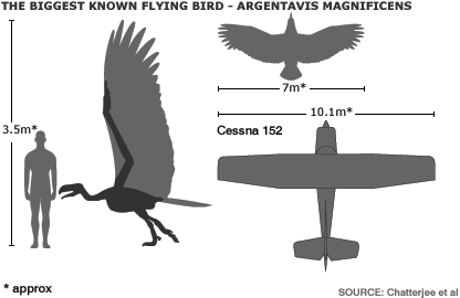 "Like an albatross or a hanglider, Argentavis needed a little sloping surface; and he needed to run a bit, and headwind would have helped. Using this trick he could take-off but after that he didn't need to do much flapping of the wings," Professor Chatterjee said.