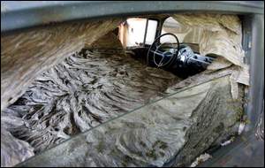 The largest nest Ray has inspected this year filled the interior of a weathered 1955 Chevrolet parked in a rural Elmore County barn. That nest was about the size of a tire in the rear floor seven weeks ago, but quickly spread to fill the entire vehicle, the property owner, Harry Coker, said. Four satellite nests around it have gotten into the eaves of the barn, about 300 yards from his home.