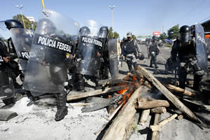 Oaxaca, México (29 octubre 2006).- La Policía Federal Preventiva inició hoy una movilización desde el Aeropuerto Internacional Benito Juárez hacia el Zócalo de esta capital para resguardar el orden.