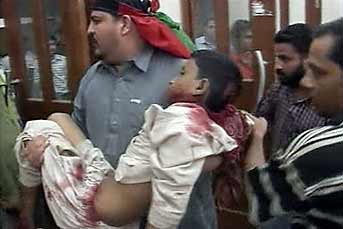 Un niño que resultó herido en la explosión es trasladado al hospital. Foto: AP Ni la ex Primera Ministra paquistaní ni la comitiva que viajaba con ella en el camión sufrieron lesiones