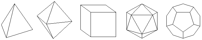 solids: the tetrahedron (4 equilateral triangles), the cube (6 squares),