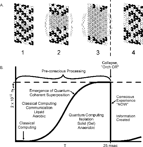 Each proposed Orch OR event consists of 1) an isolated quantum computing phase identified with preconscious, implicit processing which culminates in 2) instantaneous reduction corresponding with a discrete conscious "now" event-a Whitehead "occasion of experience."