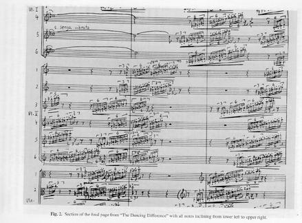 Figure 2. Section of the final page from "The Dancing Difference" with all notes inclining from lower left to upper right.