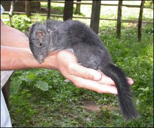 The pictures show a docile, squirrel-sized animal with dark dense fur and a long tail but not as bushy as a squirrel's. It also shows that the creature waddles like a duck with its hind feet splayed out at an angle _ ideal for climbing rocks.