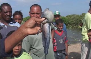 A fish, or hybrid amphibian, was caught in a fisherman's nets last Thursday.