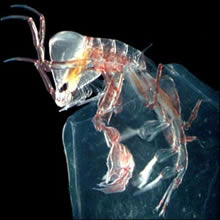 Eggs are visible on this deepwater copepod, Eaugaptilis hyperboreus. |
